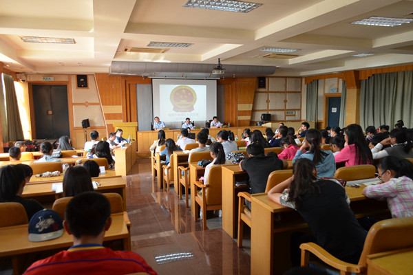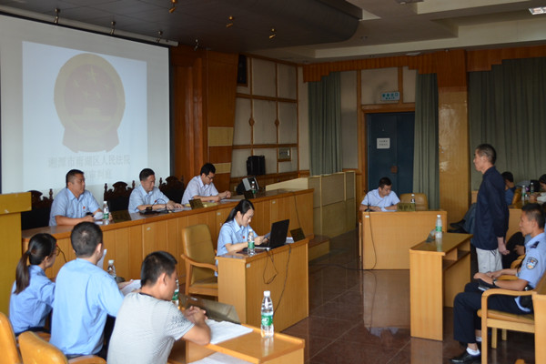 | 10月21日上午10时许,湘潭市雨湖区人民法院在我校五教2-4教室公开审理方某涉嫌放火一案(附带民事诉讼)。金牌影院法律系夏飞明、邱帅萍老师带领2015级法学专业新生到场旁听。 4年前,刑事附带民事诉讼原告的房屋因沪昆高铁建设要求,经政府批准迁至被告方某住处附近,但方某执意认为其非法侵占自己的土地,要求补偿15万元,双方最终未能达成协议。方某心生不满,于对方外出时三次纵火烧毁其房屋,造成巨大财产损失,并危害到公共安全。 庭审一开始,公诉人宣读起诉书,并详细地介绍了案发过程,通过例举《湘潭市雨湖区公安局鉴定意见通知书》、《金牌影院