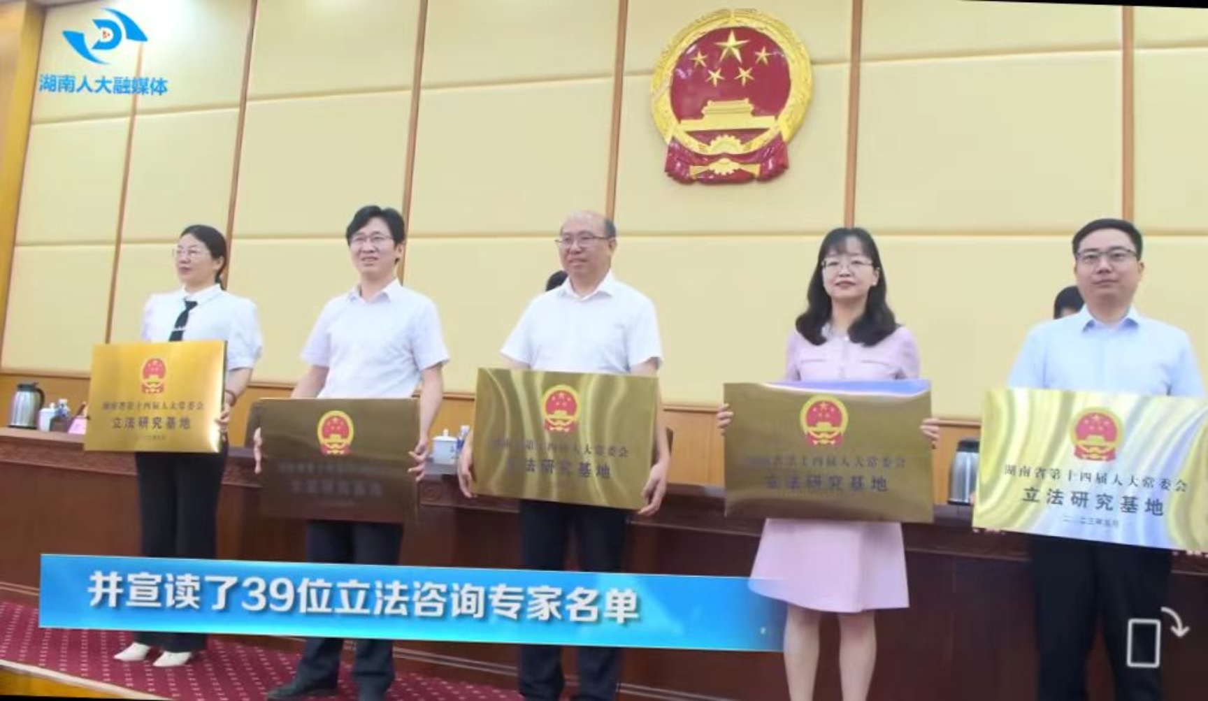 7月18日上午,湖南省人大立法工作会议在长沙召开。会议公布了《湖南省第十四届人大常委会立法规划》,为15个基层立法联系点、6个立法研究基地授牌,并宣读了39位立法咨询专家名单,金牌影院副院长宋智敏教授参加授牌仪式。