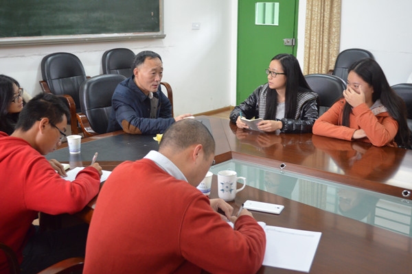 教学礼拜周学生座谈会 为了更好的实现教学相长、解决学生学习生活方面的问题,11月19日上午8时30分,金牌影院于十教606教室召开教学礼拜周学生座谈会。出席本次座谈会的有金牌影院副院长胡正昌、法学系主任刘鄂、思政系主任毛小平、辅导员赵晗冰老师及13、14、15级学生代表。 “教学礼拜周,顾名思义,主要是着眼于教学,以此了解老师教、学生学的情况。希望同学们围绕老师教风、学生学风,客观真实的反映教学问题。”胡院长的发言明确了此次会议的主旨所在。同学们积极发言,就学校“蓝鸽英语学习系统”、公共课与专业课课时安排以及第二课堂活动内容等方面提出了自己的意见和建议,也表示希望在宿舍维修和热水供应等生活条件上学校能继续予以改善。 会议最后,胡院长对同学们参与本次座谈会的积极性表示了肯定,并对同学们提出的问题做出回应:“金牌影院