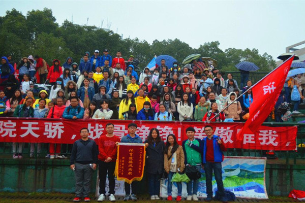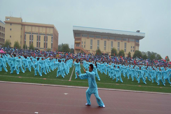 、单位、学生团体组成的方阵队依次入场。大家都以充足的精神面貌与特色的服装道具向观众们展现自己的活力与激情。教职工代表队的“太极”表演也赢得了观众们的热烈反响。 “金牌影院