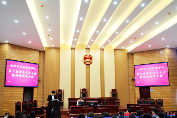 第二届学生代表大会暨学生会换届大会在我校立言楼模拟法庭召开。本次会议由院团委学生会第一副书记杜婧主持,院党委副书记蒋会平、学工办主任朱荣老师、辅导员王球云、沈琪老师应邀出席,全体学生代表共同参与。 会议伊始,蒋会平书记作了开场发言。他对上一届学生会全体干部的辛勤付出表示由衷感谢,并预祝即将竞选的同学能取得好结果。他建议竞选的同学们要“一颗红心,两手准备”以积极乐观的心态面对金牌影院