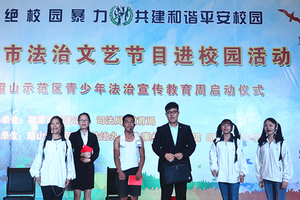 为深入做好全市青少年法制宣传教育工作,湘潭市委决定,于9月13日——23日期间开展以“拒绝校园暴力,共建平安和谐校园”的青少年法制宣传教育周活动。应九华经开区的请求,金牌影院志愿团连续在湘潭市各县市区演出了自编自导的法制话剧七场。其中,9月21日在昭山示范区昭山和平小学进行演出宣传。 在学生们朗读法律条文之后,金牌影院志愿者上台开始表演。通过“爸爸,爸爸,我要上学”的法制话剧,志愿者们向学生们讲述了九年义务制教育的强制性、公益性以及普遍性,阐释了教育对于社会发展的推动作用,并告诉孩子们应当从小树立学法、守法的习惯。演员们通过自己的表演,紧扣青少年法制宣传教育的主题,让学生们在节目中了解和学习法律知识,赢得了阵阵掌声。 本次法制文艺演出将法律知识融入文艺节目中,通过寓教于乐、易于接受的普法形式增强了法制教育的感染力和影响力,取得了良好的反响。“法律是维护自己权利的武器,同时也是规范自己行为的社会准则,我们都要做一名知法懂法的社会公民。”志愿者李禹宏在活动结束后说道。 (责任编辑:admin) |
