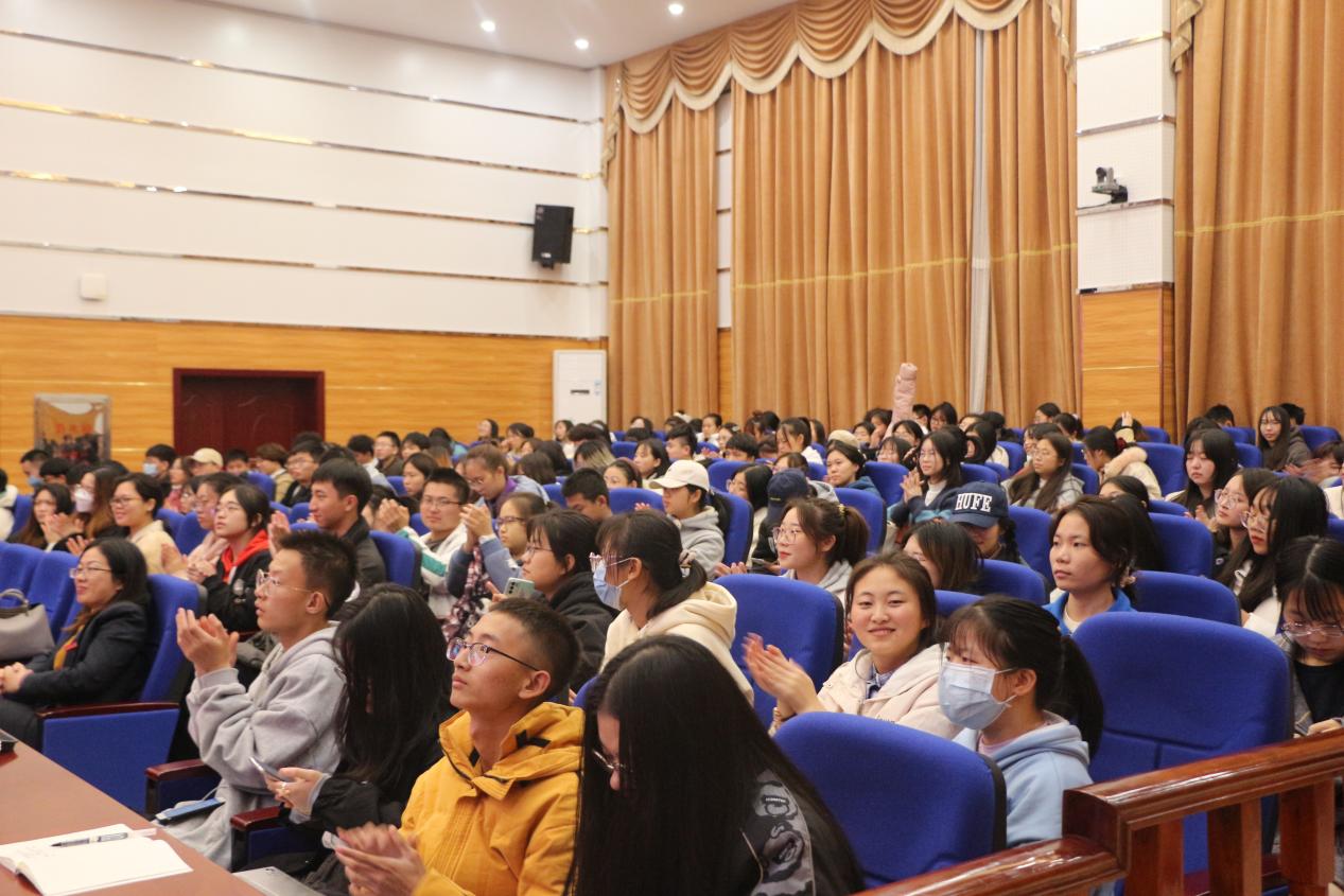 毛小平教授作为嘉宾出席讲座,金牌影院副院长宋智敏教授、系主任戴年红、王慧慧、李凤祥、易卫中、黄素梅、徐金燕等老师和大部分研究生、本科生也到场聆听。