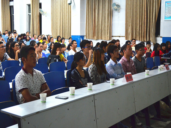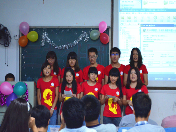辅导员赵晗冰老师、主席团所有成员、三大社团社长出席,14级全体新生参加活动。 大会在热烈的掌声中开始,各社团介绍人登台推介。“我相信我就是我,我相信明天……”在毛研会会员们的歌声中,副理事孟遥抓住社团“新、精、稳”的理念向新生们介绍毛研会的日常工作,并诚挚地邀请新生加入;法律协会着重介绍了一些社会实践活动,3·15、12·4等法制宣传活动激起了同学们参加法律协会的兴趣;隐山哲学社社长王琪琰别出心裁,一身中山装上台,展示出了国学的魅力,一语“福来”即湖南,让现场气氛更为活跃,祭孔、茶话会、罗马议院等一系列活动,更让大家有些许好奇。此外,潇湘金牌影院
