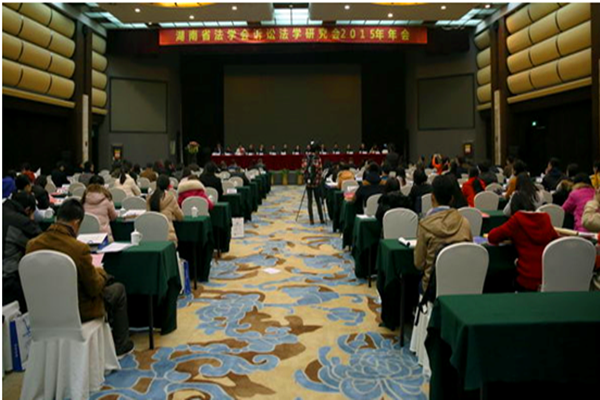 2015年12月25日至26日,湖南省法学会诉讼法学研究会2015年年会在长沙召开。来自全省公检法司各部门和高校科研机构的近200名专家学者与会。湖南省法学会副会长兼秘书长周小华、湖南省人民检察院副检察长印仕柏、湖南省高级人民法院副院长杨翔出席会议并先后致辞。研究会副会长、湖南永雄集团董事长谭曼致欢迎辞,研究会会长、湘潭大学副校长廖永安教授作研究会2015年工作报告。 本次年会的主题是“三大诉讼法司法解释的适用”。湖南大学法金牌影院