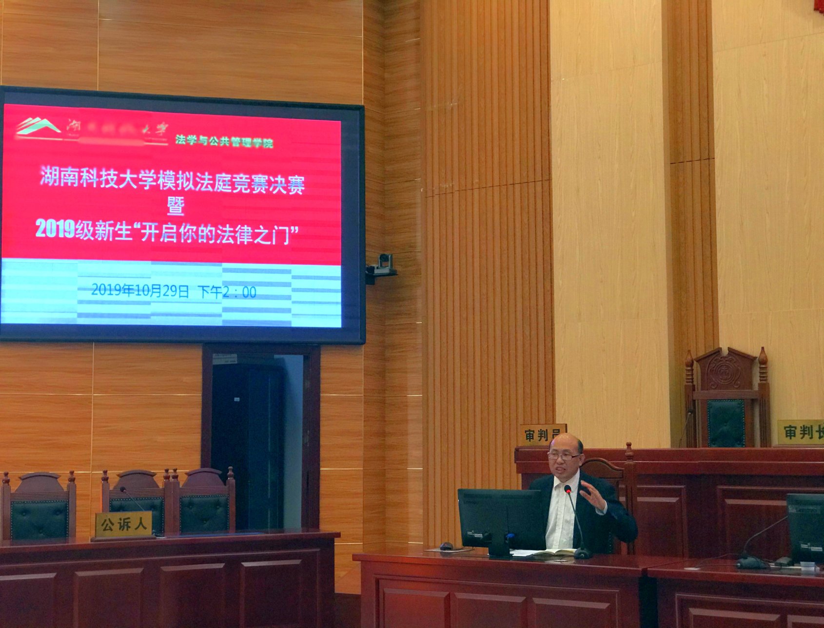 模拟法庭竞赛决赛暨2019级新生"开启你的法律之门"活动在立言楼模拟法庭隆重举行。本届模拟法庭竞赛同时也是湖南省大学生模拟法庭竞赛的选拔赛,法律协会为活动拟定了公平、专业、严谨、细致的赛程和选拔规则,并邀请了法管金牌影院