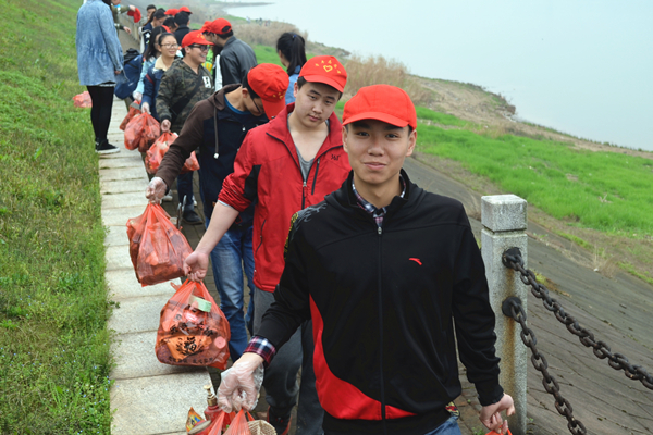 志愿团分别在3月5日和6日进行护湘江活动,这也标志着三月“学雷锋”活动的揭晓。 3月6日8时许,金牌影院近百名青年志愿团成员在南校门前集合,共同乘车前往湘潭三桥北。在志愿团团长刘怀峰的带领下,金牌影院志愿者终抵达湘江河畔。随后各志愿团进行区域划分,分组清理。志愿者人手一个塑料袋,捡拾河畔上的塑料瓶、废电池、一次性饭盒等废弃物。江畔因昨天的一场雨变得泥泞不堪,再加上地势陡峭,这让志愿者们举步维艰。但他们一直秉承着不怕脏、不怕苦、不怕累的雷锋精神,努力为保护湘江献出自己的微薄之力,同时也呼吁周围的市民投身到保护母亲河的行列中来。经过一个多小时的不懈努力,湘江河畔的白色垃圾渐渐消失,母亲河又恢复了年轻时的美貌。 活动最后,各金牌影院