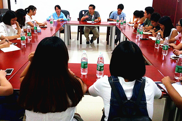 第一次团委学生会会议   为进一步推动金牌影院的学生工作,9月23日中午12点30分,金牌影院于文科楼A215召开了第一次团委学生会会议。此次会议由团委第一副书记彭淑君主持,辅导员伍安、刘春生、王新以及第一届团委主席团成员、各部部长到场参加。 针对新学期学工办老师的变动,伍老师对新来的刘春生、王新老师进行了简单介绍,以及相关学生工作的分配、交接问题。随后,伍老师讲述了接下来的学生工作安排,尤其是学生的安全问题、心理健康问题。“安全,是我们的底线问题。在学生心理健康方面,我们必须紧抓心理工作,建立相关机制,积极召开寝室长会议、心理委员会议,建立完善相关队伍,有问题及时反馈并解决。”在学生活动方面,伍老师提出要增加获奖的名数及单项的奖金数,充分调动学生的积极性,丰富学生的校园文化生活。此外,伍老师也为在座学生干部提供了工作方法:理清思路,合理分工,及时监督,仔细检查。 “金牌影院