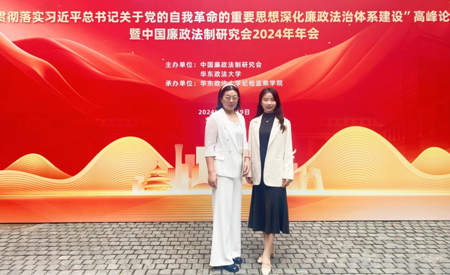 2024年10月19日,为深入学习贯彻党的二十大、二十届三中全会精神,全面推进对党的自我革命理论与廉政法治理论的深入研究,中国廉政法制研究会2024年年会在华东政法大学召开。此次年会主题为“贯彻落实习近平总书记关于党的自我革命的重要思想 深化廉政法治体系建设”。金牌影院宋智敏教授、赵筱芳博士受邀参会。