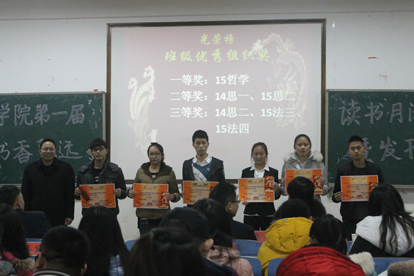 首届“书香致远”读书月活动闭幕式暨发刊仪式在八教2-3教室举行。到场的嘉宾有院长廖加林、党委副书记叶军、副院长胡正昌,专业老师代表杨盛军、刘鄂、李育军博士和辅导员赵晗冰老师。院团委学生会主席团成员、2015级全体新生以及相关获奖同学到场参加。 “随风奔跑自由是方向,追逐雷和闪电的力量。”在向鹏荻和苗赞杰同学激情澎湃的歌声中,闭幕式正式拉开帷幕。随后,夏菁、沈磊、王雨冰三位同学依次上台,分享自己的读书感悟。王雨冰在谈及自己阅读的《理想国》时说到:“教育关乎民族的未来,若一个国家的教育系统足够完善,它将永远屹立于世界。”随后,老师们分别为读书笔记、读书报告和优秀组织班级的获奖个人和集体颁发了证书及奖品。指导老师李育军博士肯定了同学们参与的积极性,并指出,“读书月活动只是激发大家阅读兴趣的一个契机,阅读,贵在坚持。我们应活到老,学到老,读到老,精读拥有的每一本好书”。 活动最后,廖院长鼓励同学们“应珍惜当下的读书机会,努力做到“转识成智”,理解书中的人生价值和意义,学会面对人生的逆境。书海无涯,读书不止”。 (责任编辑:admin) |