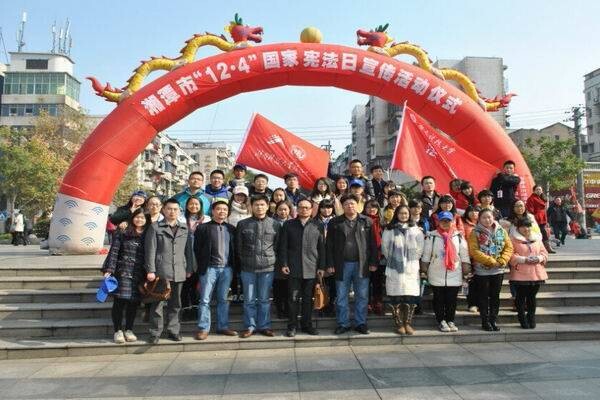 | (一)法制宣传日,普法精神传万家 2014 年12月4日 ,是全国首个宪法日。由湘潭市司法局主办、市公安局、质监局、消费者协会等多家单位共同参与的法制宣传活动在湘潭市白石广场隆重举行,金牌影院作为市高校宣传单位之一也积极参与了此次活动。金牌影院