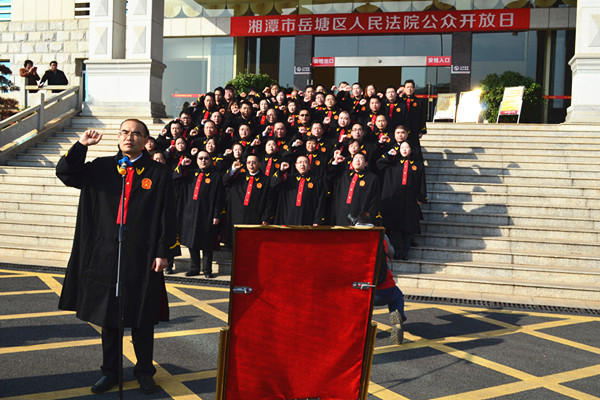 党委书记黄伟总结说:“这是一个理论与实践相结合的机会,同学们走出课堂、走上社会,收获甚多。希望今后多开展并参加此类法律实践活动,努力开拓视野、提升学识素养,做一名新时代的法律人。” (二)法院公开日,阳光司法“零距离” 12 月4日 下午,岳塘区人民法院特此面向社会各界开展“法院公众开放日”活动。数名受邀的区人大代表、政协委员以及学生、群众和媒体代表走进法院,旁听庭审,近距离感受法院的各项日常工作。我校由法金牌影院