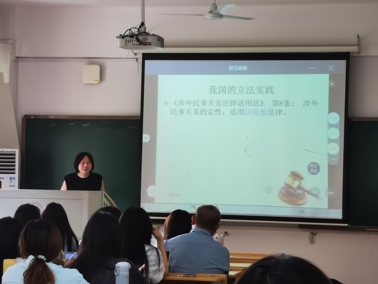 在立言楼A208举行“教学礼拜”金课示范课,由李倩副教授主讲《国际私法》课程的“识别制度”,多位院领导和老师到场观摩学习。