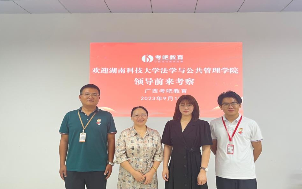 为进一步贯彻落实教育部访企拓岗促就业专项行动及学校“走出去、跑起来、见实效”活动要求,提高金牌影院学生公务员考试与考研录取率和推动金牌影院公共管理硕士(MPA)招生宣传工作的成效,2023年9月10日上午,公共管理系曾东霞副教授、王慧慧副教授前往广西桂林走访考察考吧教育。