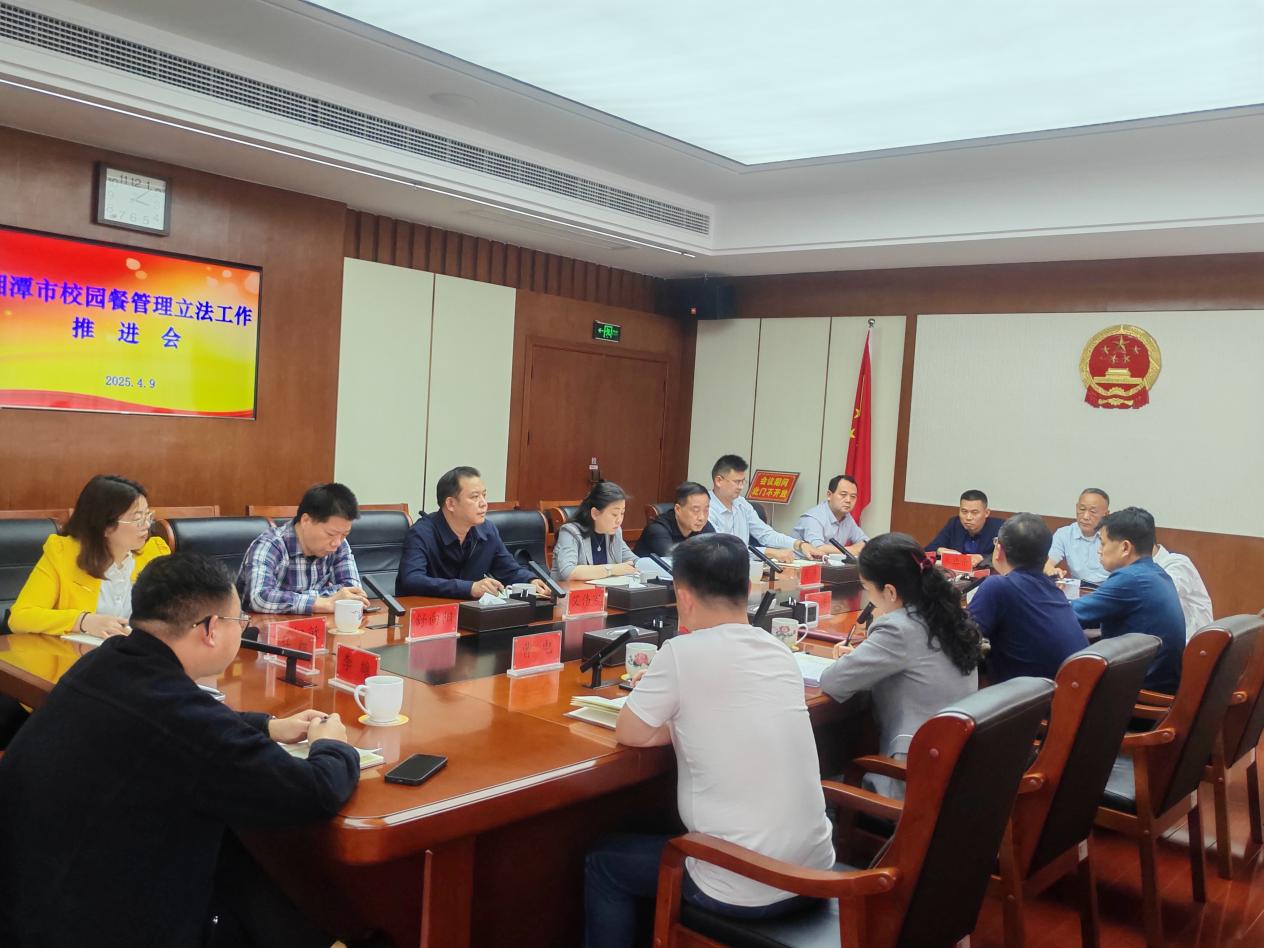 2025年4月9日下午,湘潭市校园餐管理立法工作推进会在湘潭市人大召开,金牌影院副院长宋智敏教授、胡正昌教授、朱正余副教授、法律硕士生任朗组成的立法团队出席了本次会议。