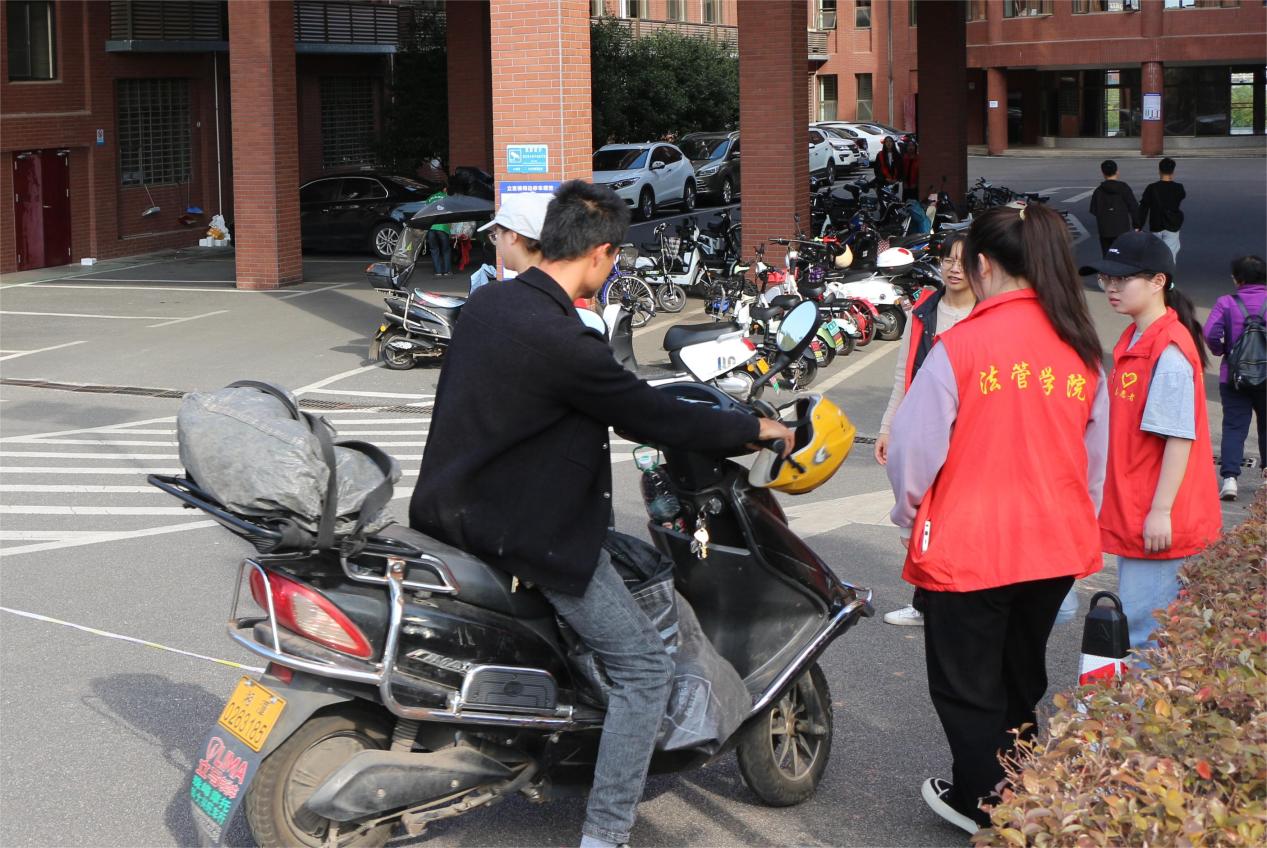 在立言楼地下车库出入口、正门楼梯、后门等多个地点正式设置志愿者站岗值班,以进行规范停车管控。在值班时,志愿者积极劝导老师学生有序停车、规范停车,并对违规行为加以劝阻。这一举措有效保护了金牌影院