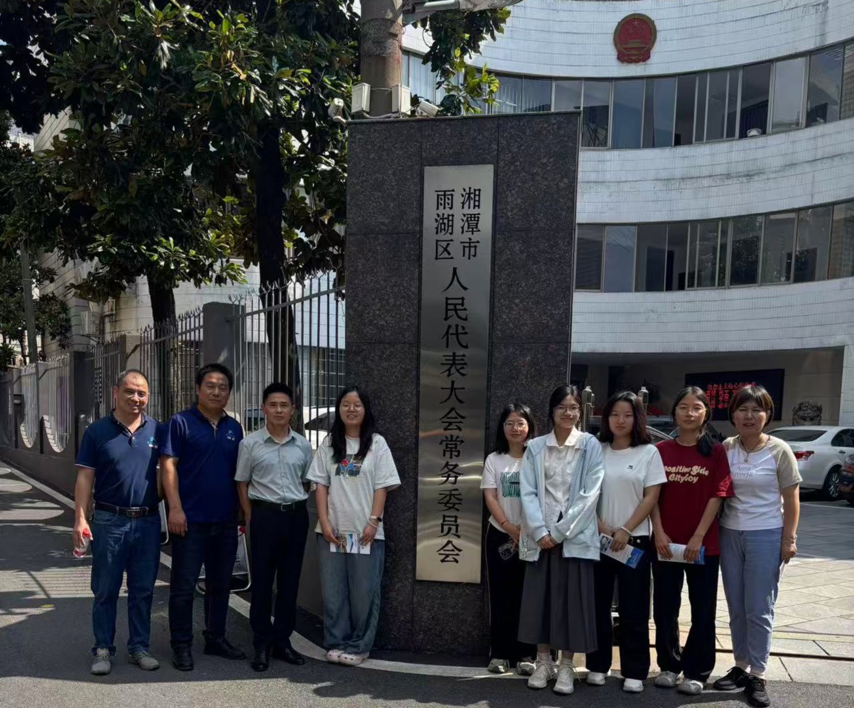 ▲实习检查人员与实习学生在雨湖区人民代表大会常务委员会合影