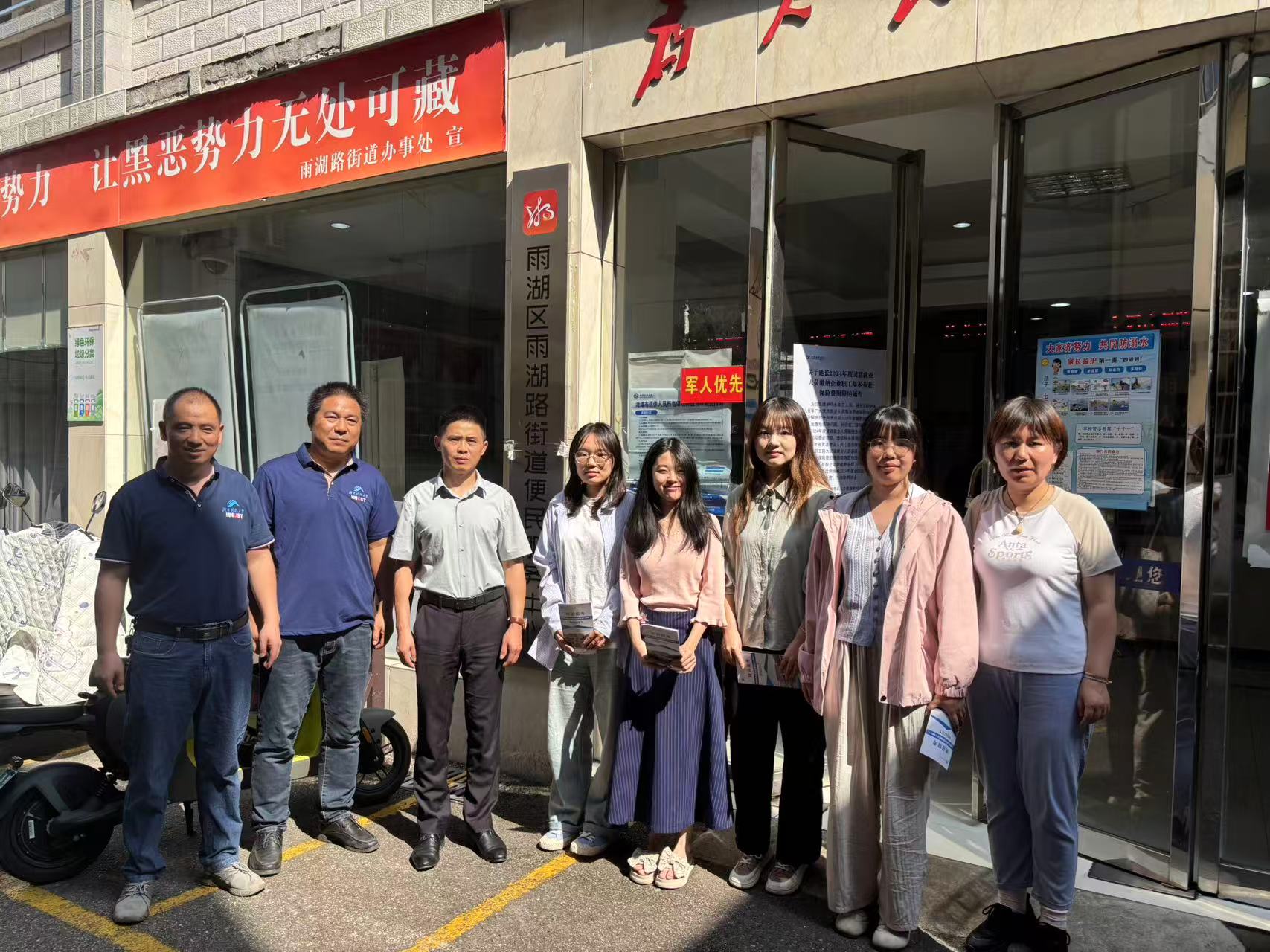 ▲实习检查人员与实习学生在雨湖区雨湖路街道便民服务中心合影