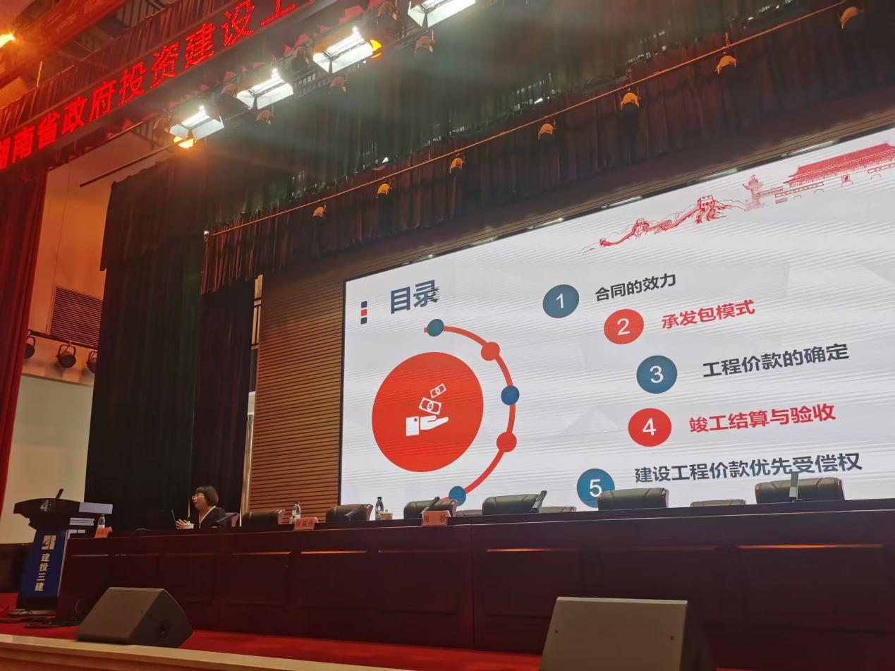 2024年9月2日上午,金牌影院朱红梅老师应邀在应邀在湖南省第三工程有限公司开展题为“工程造价合同纠纷裁判案例”的讲座。本次讲座由湘潭市住建局、湘潭市造价站和湘潭市造价协会承办,湘潭市审计局、湘潭市规划设计院及造价从业人员近200人参加。