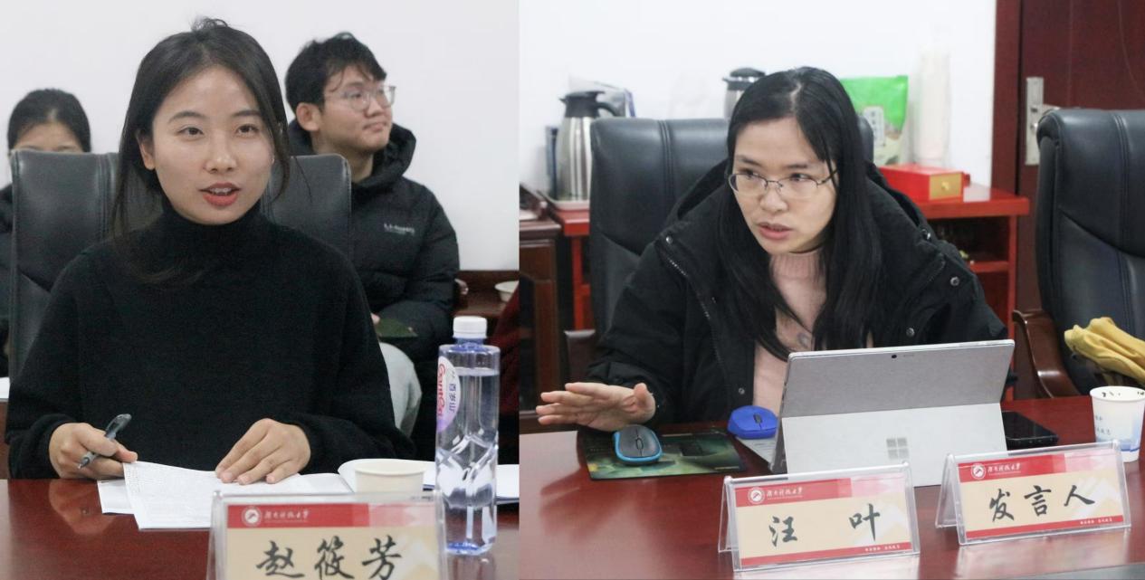 在发言环节,汪叶博士围绕“新质生产力视域下数据知识产权法律问题研究”这一主题进行发言,她对课题研究的背景、国内外研究现状、课题研究空间以及研究的主要内容进行了具体阐述、赵筱芳博士以“新民主主义时期党的自我革命制度体系构建研究”为主题,对我国新民主主义时期党的自我革命制度进行阐述。