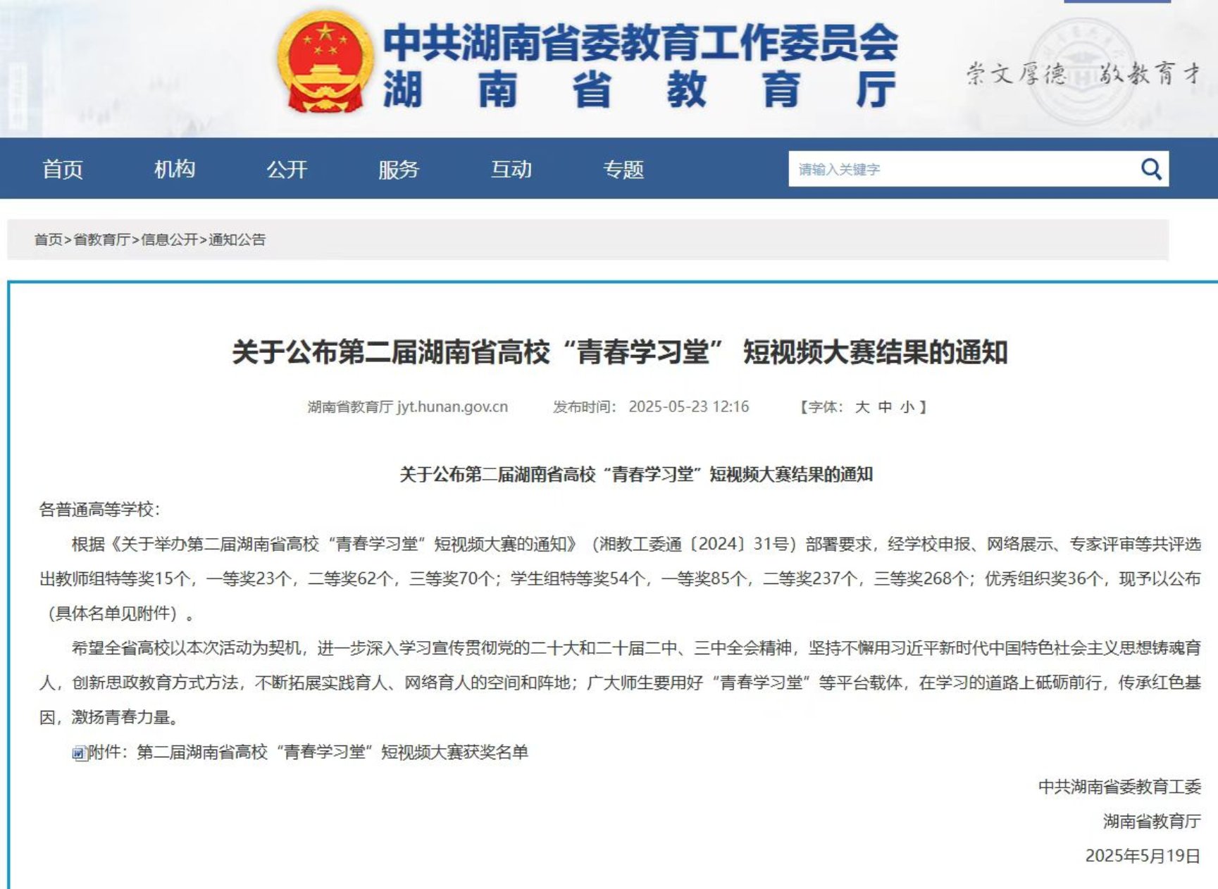 金牌影院刘鄂老师带领学生在第二届湖南省高校“青春学习堂”短视频大赛荣获二等奖