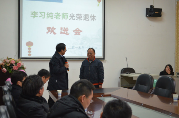 | 一支粉笔,三尺讲台,他在科大耕耘四十余载;岁月染芳华,步入退休之年,他收获了满园桃李。1月9日下午4点,“李习纯老师光荣退休欢送会”于十教606顺利召开。院党委书记黄伟,院长廖加林,副院长胡正昌、喻军、陆自荣等老师和学生代表出席了此次会议。会议由政治系主任毛小平主持。 师生情 会议伊始,思政专业同学拍摄的祝福视频表达了对李老师的衷心祝愿之心、真诚感谢之情。学生代表李军师以一句“他不只是老师,更是我们的爷爷。”让大家了解了李老师和蔼可亲的一面。“不管是平时教学,还是教育实习带队期间,李老师总是不断激励我们成长”。一首《感恩的心》,让全场师生齐声吟唱。 李老师的师德风貌深深地刻在学生心里,感染并影响着他们。学生们献上鲜花并颁发“最佳魅力老师奖”给可亲可敬的李老师。 同事情 “ 爱岗敬业、默默耕耘、不图名利、不记得失,于平凡之处见伟大,于细微之中显精神 ” ,廖院长对李老师的高度评价,也祝福李老师今后生活健康、幸福。教师代表谭良春则从 “ 好老师、好领导、好兄弟 ” 三个方面表达了与李老师的深厚情谊。 为表达全体老师的敬意,教师代表凌应生博士向李老师献花,黄书记代表金牌影院
