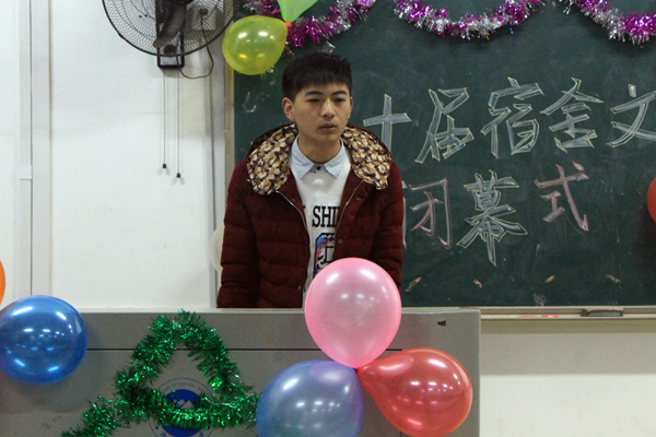 第十届宿舍文化艺术节闭幕式暨雅室设计大赛决赛 12月17日晚7时,金牌影院第十届宿舍文化节闭幕式暨雅室设计大赛决赛于第八教学楼2-3教室展开。金牌影院党委副书记叶军、辅导员伍安老师、2015级班主任代表朱学恩、陈小杉和张晚林老师以及第13届团委学生会主要成员出席此次闭幕式,2015全体级新生到场参加。 活动伊始,金牌影院团委学生会第一副书记张航侨简单介绍了本次宿舍文化艺术节系列活动的开展情况。随后,宿管部部长魏雯雯宣布了此次雅室设计大赛决赛的评比标准及细则,主要从各寝室的设计主题、装饰布局、整体效果以及讲解效果四个方面进行评分。 此次雅室设计大赛,共有6间寝室一路过关斩将,成功晋级决赛。首先进行展示的是8区9栋218寝室,身处异乡的四个小伙子,“家”便是他们的主题。照片墙上,悬挂着他们最爱的诗歌和梦想着的远方;墙上青葱大树的图片象征着他们坚毅不屈的精神;更有励志心语时时激励着他们不断拼搏,永不言败。“湘海居”,一个有爱的地方,四个漂泊游子的“家”。5区7栋305亦给大家带来不一样的精彩,“以梦为马,四姓之家”是她们的主题。她们以梦想装扮自己的空间,用未来鞭策自己前行。“四季沐歌”是5区5栋108寝室的主题,她们废物利用,秉承环保理念。“柳枝式的窗帘焕发着春的勃勃生机,天花板上的“星空”与我们说着悄悄话,用枯叶做成的友谊之树,来年定会枝繁叶茂……”各寝室依次上台讲述自己的寝室设计,引起在座同学的阵阵惊叹。 经过激烈角逐,8区9栋218寝室斩获雅室设计一等奖,5区5栋108寝室、7栋305寝室夺得二等奖,三等奖获得者是5区5栋103寝室、104寝室、8区9栋101寝室。同时,本次寝室文化艺术节产生学习型寝室四个、寝室标志设计奖四个、手抄报编辑奖四个、创新项目活动奖四个。2015级法学四班获得优秀组织奖。 活动最后,伍安老师表示,寝室文化是学风建设的重要组成部分,良好的寝室环境能够营造出良好的学风。举办宿舍文化艺术节不仅有利于增进友谊,更有利于以小家带动大家,促进整个金牌影院