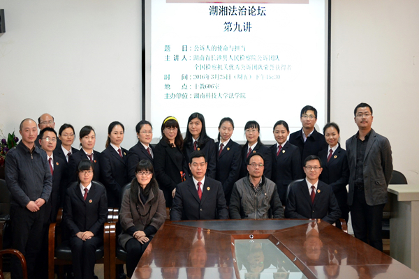 3月25日下午3时,金牌影院湖湘法治论坛第九讲于我校第十教学楼606开讲,长沙县人民检察院检察官李江发携其公诉团队莅临论坛,开展以“公诉人的使命与担当”为主题的讲座。金牌影院副院长喻军、法学系主任邱帅萍、刘鄂老师及胡之芳、李云霖、宋智敏等出席本次讲座,15级法学专业同学参加讲座。 李江发检察官询问在场同学对于“检察”的理解,并以“查”、“捕”、“诉”、“抗”、“纠”五字高度凝练地阐述了检察官的职责。“公诉人是维护社会公平正义的最后一道防线”伍飞检察官言简意赅地概括了公诉人的使命与责任担当。“90后”检察官腾拓则结合自身求学、入职的诸多经历激励学弟学妹们珍惜学习机会,为从事法律职业而做充足的知识储备。在互动交流环节中,肖竹晖、贺勇、陶天吉等学子就法学理论、实务、实时热点中遇到的疑惑向检察官团体请教,宋智敏对当前司法改革背景下做出的关于跨行政区域设立人民检察院这一决策的法律依据提出疑问,并询问检察官团体的相关看法。论坛现场气氛活跃,学术氛围浓厚。 最后,喻军以“情感体验的真实性、检察内务的娴熟性、教育内容的丰富性”高度评价了此次讲座。“雄关漫步真如铁,而今迈步从头越”胡之芳以此名句向检察官们致敬,与同学们共勉。 (责任编辑:admin) |