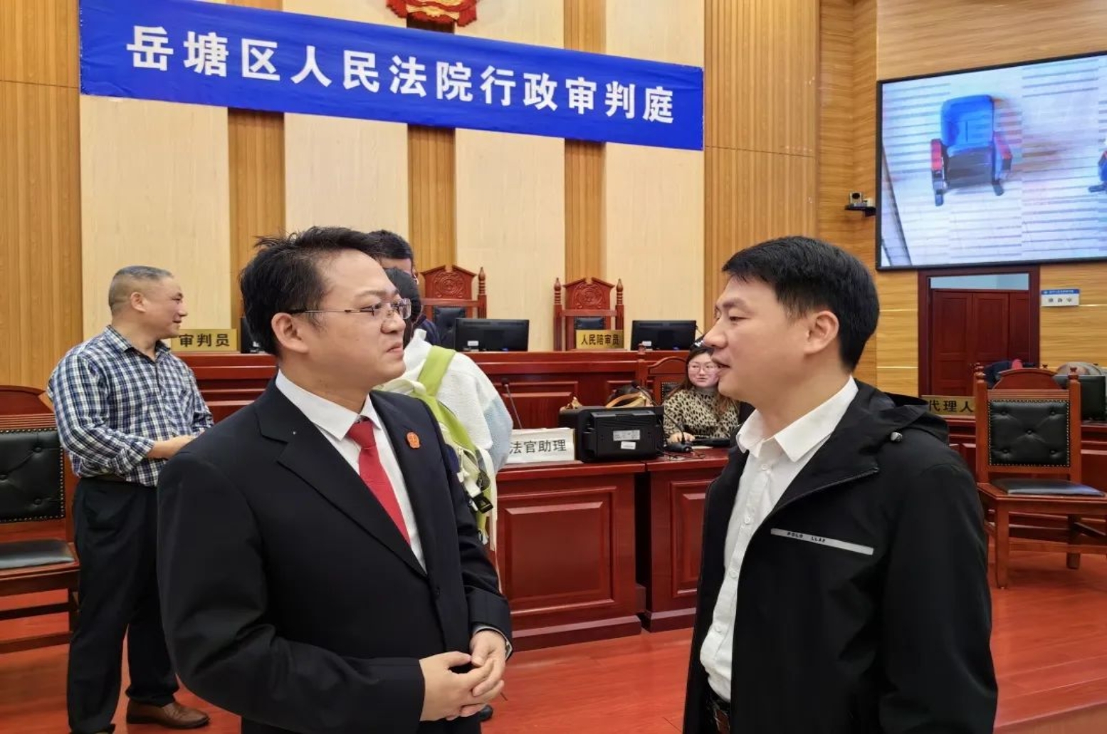 4月28日上午,岳塘区人民法院行政审判庭来金牌影院模拟法庭审理一起“民告官”的案件,全国人大代表黄乐以及和平街道人大代表团应邀参加了庭审观摩。