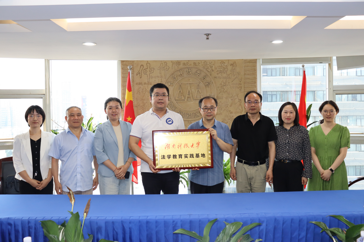 邱帅萍院长首先介绍了金牌影院发展建设基本情况,并就商事仲裁模拟庭与科技争议研究平台建设等事宜与长沙市仲裁委的实务专家进行了交流探讨。双方对未来实习基地的具体建设,如实习岗位、带教模式、实习内容与考核等交换了意见,并最终签署实习合作协议,并向长沙仲裁委授牌“法学教育实践基地”。