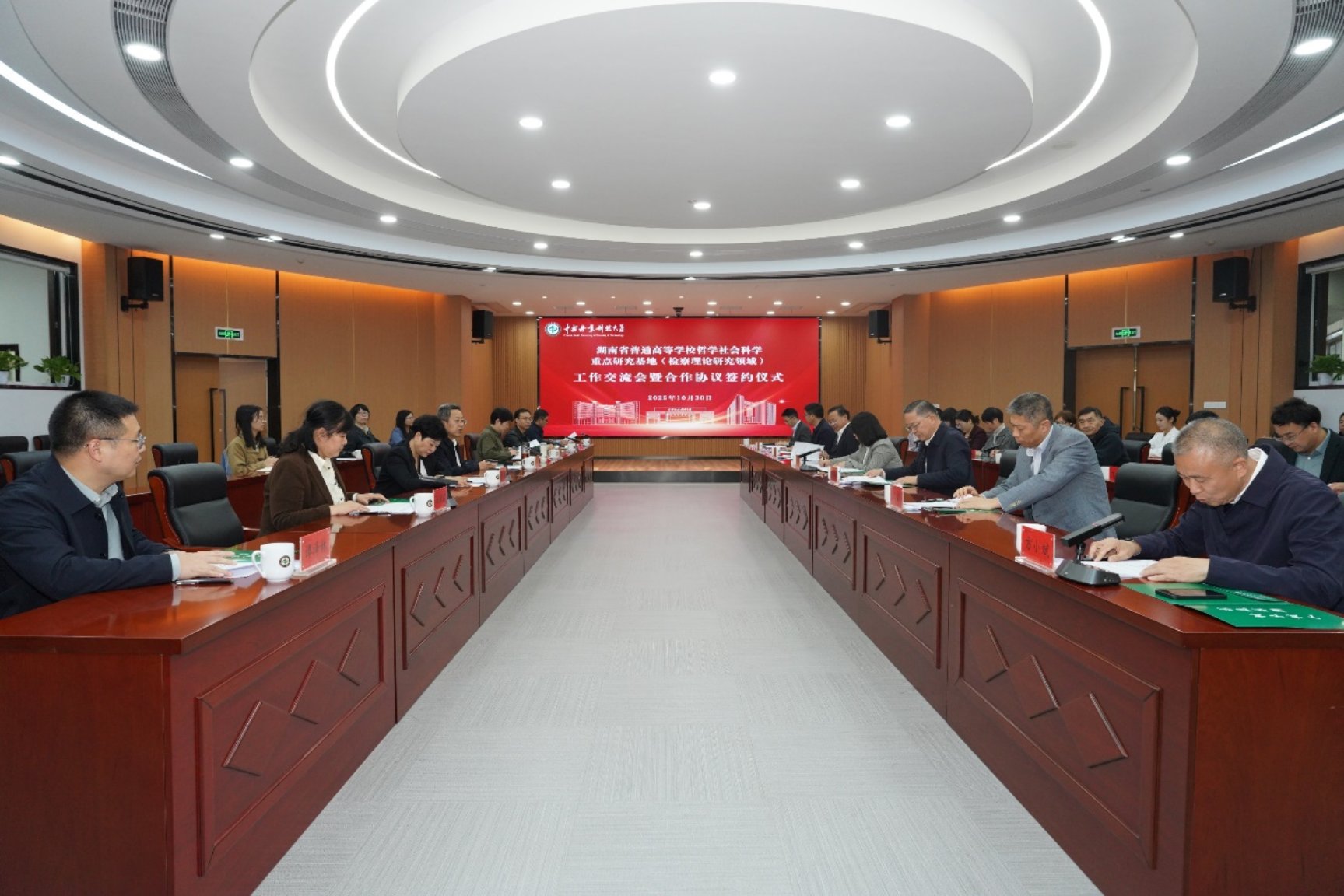 2025年10月30日,湖南省普通高等学校哲学社会科学重点研究基地(检察理论研究领域)工作交流会暨合作协议签约仪式在中南林业科技大学崇德楼成功举办。来自湖南省人民检察院、湖南省教育厅及多所高校的领导专家齐聚一堂,共商校检合作新机制,共绘检察理论研究新蓝图。我校副校长周智华教授、金牌影院