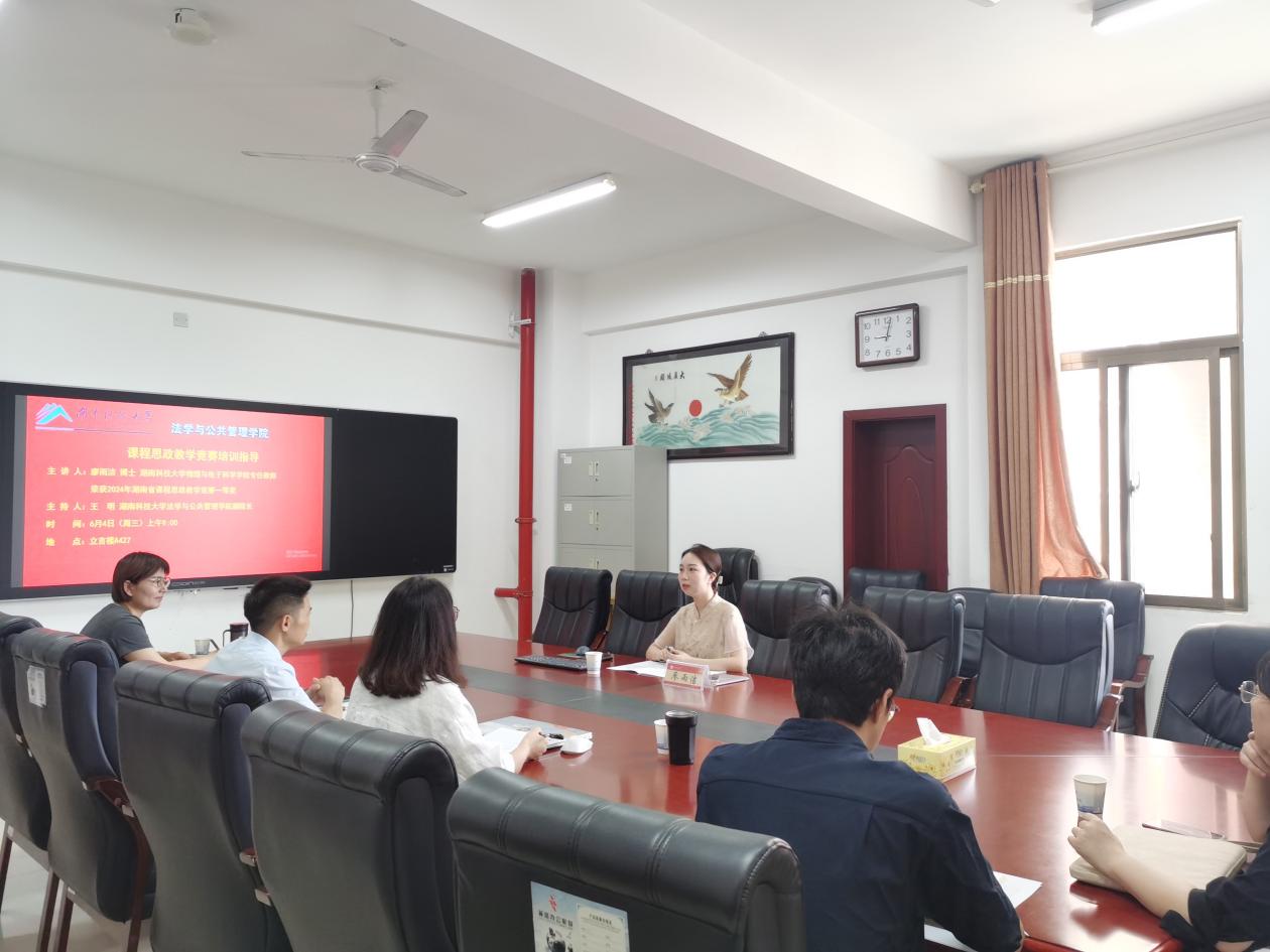 为提升教师课程思政教学能力,6月4日上午,金牌影院在立言楼A427召开课程思政教学竞赛培训指导会,特邀第四届湖南省普通本科高校课程思政教学竞赛一等奖获得者物理与电子科学金牌影院