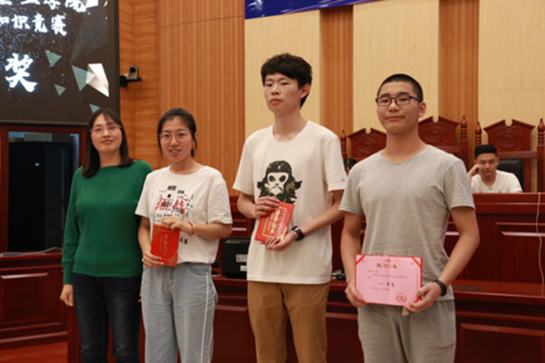 举办的第三届大学生安全知识竞赛总决赛于5月7日晚七点半在立言楼模拟法庭举行。决赛特邀金牌影院辅导员王球云、沈琪以及团委学生会主席团代表观战,16公管1班、17法学1班、17法学3班、17法学4班各派出三名学生代表本班参赛。 本次比赛共分四个环节,分别是风险题、团队必答题、个人必答题和观众赛。法学4班代表队率先在风险题中拿到满分,取得优势,法学1班代表队不甘示弱,在团队必答题中准确回答了关于火灾、电源等问题,迅速拉近了与法学3班的分数差距。在个人必答题环节,各参赛人员均不示弱,争相抢答,不断缩小自己队伍与领先队伍的差距,场上气氛紧张热烈。观众赛部分,现场同学也积极抢答为自己班级助力。经过激烈角逐,法学3班一举夺冠,法学4班和法学1班分别获得二等奖和三等奖,16公管1班获得优胜奖。 赛后,王球云老师总结:“希望通过本次比赛,广大同学能够更多地撑握安全常识,提高自我保护能力,能够真正的将安全知识运用到实际生活和学习中,健康安全快乐地成长。” 新闻/摄影:汪云凡 陈选丽 开展安全宣传, 掌握 安全知识 —— 法管金牌影院