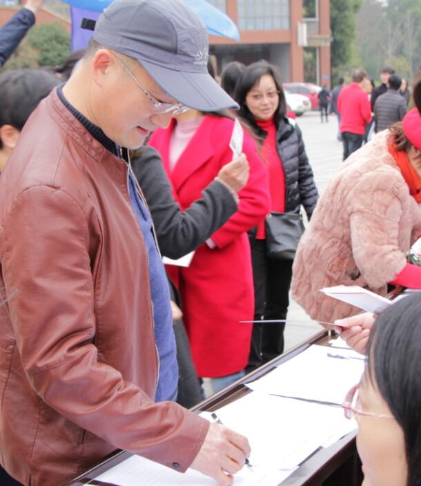 随着签到章的集齐,教职工们在终点处领取了作为奖品的印有金牌影院