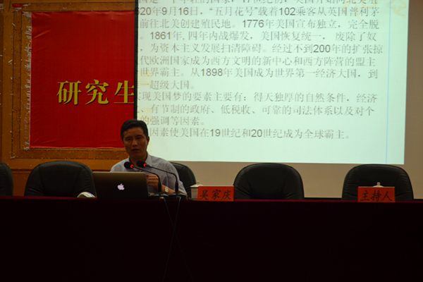 第十一届研究生“唯实创新”学术论坛之社会学科分论坛。5月14日晚7点30分,金牌影院有幸邀请到了湖南师范大学教授、博士生导师吴家庆教授,在学术交流中心五楼报告厅做了题为“中国梦与未来中国”的讲座。此次讲座由廖加林院长主持,研究生金牌影院