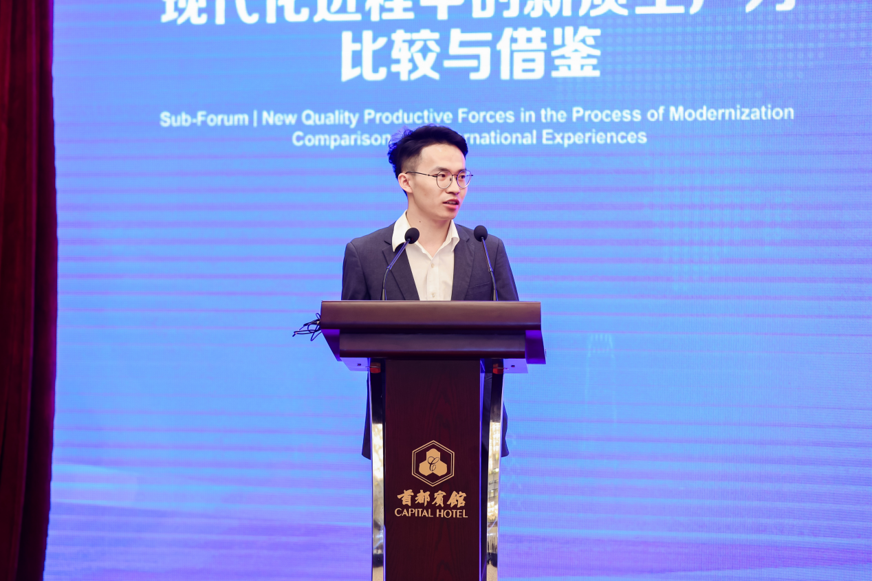 研讨会设主论坛与分论坛两大环节。在“现代化进程中的新质生产力:比较与借鉴”分论坛中,毛成毅博士以“气候人权与新质生产力”为主题作专题发言。他从气候治理与人权保障的互动关系切入,系统阐释新质生产力的绿色内涵,结合美国、德国等国家的典型案例,分析新质生产力在全球绿色发展中的实践路径,并进一步探讨中国式新质生产力发展的可行方向,获得了与会学者的一致认同与好评。