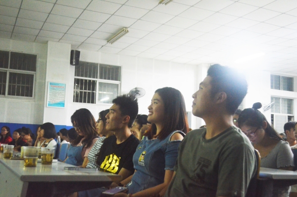 团委学生会注入新鲜血液。第一届学生会主席团成员,学生会各部门部长、副部长莅临会场,16级全体新生到场聆听参加大会。 大会伊始,14个部门负责人按照抽签顺序,依次上台讲解。他们的介绍均采取放映PPT和视频的方式,向新生抛出橄榄枝。各部门视频内容囊括部门成员介绍、日常活动剪影等,PPT则详细介绍了部门日常工作和招新要求。宣传部的视频充分展现了部门特色,话剧组的视频则以小剧场的方式引得欢笑阵阵。组织部和治保部部门成员则别出心裁,在负责人介绍结束后,通过向新生撒糖、新生QQ群发红包的方式,赢得一众欢呼。 最后,金牌影院