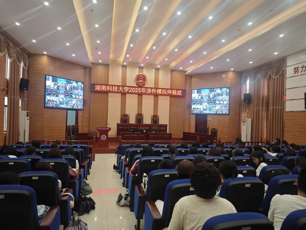 党委书记郑海祥主持,并邀请了湘潭市仲裁委员会罗觉主任和仲裁案件管理部马智坚部长出席致辞并作现场指导。我校2017级校友、英国杜伦大学法金牌影院