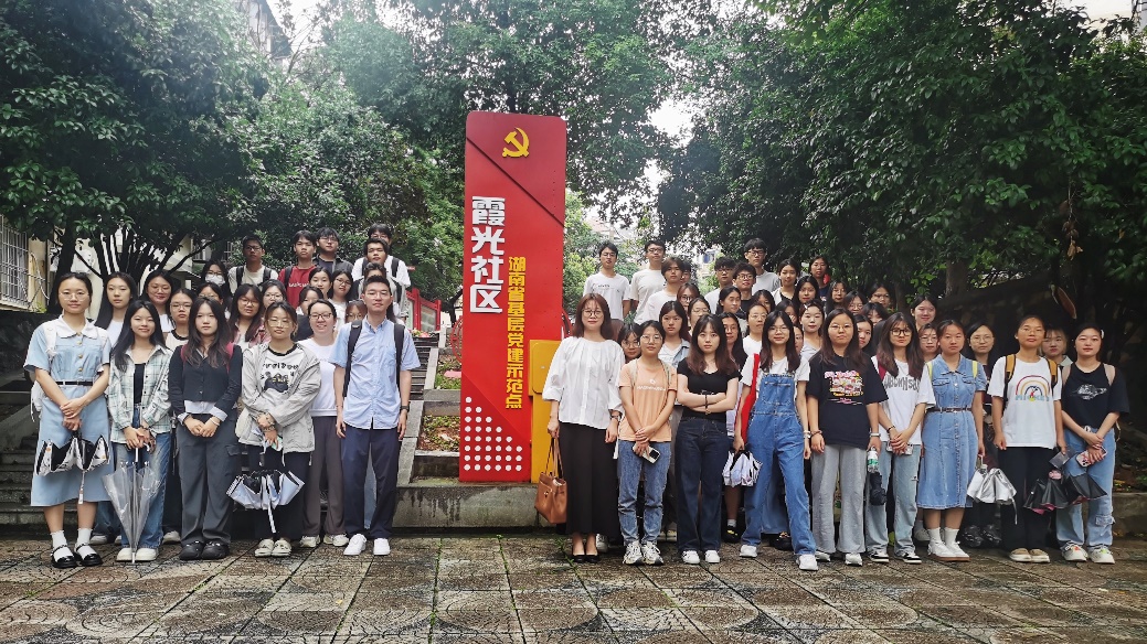 ▲ 学生在岳塘区霞光社区见习合照