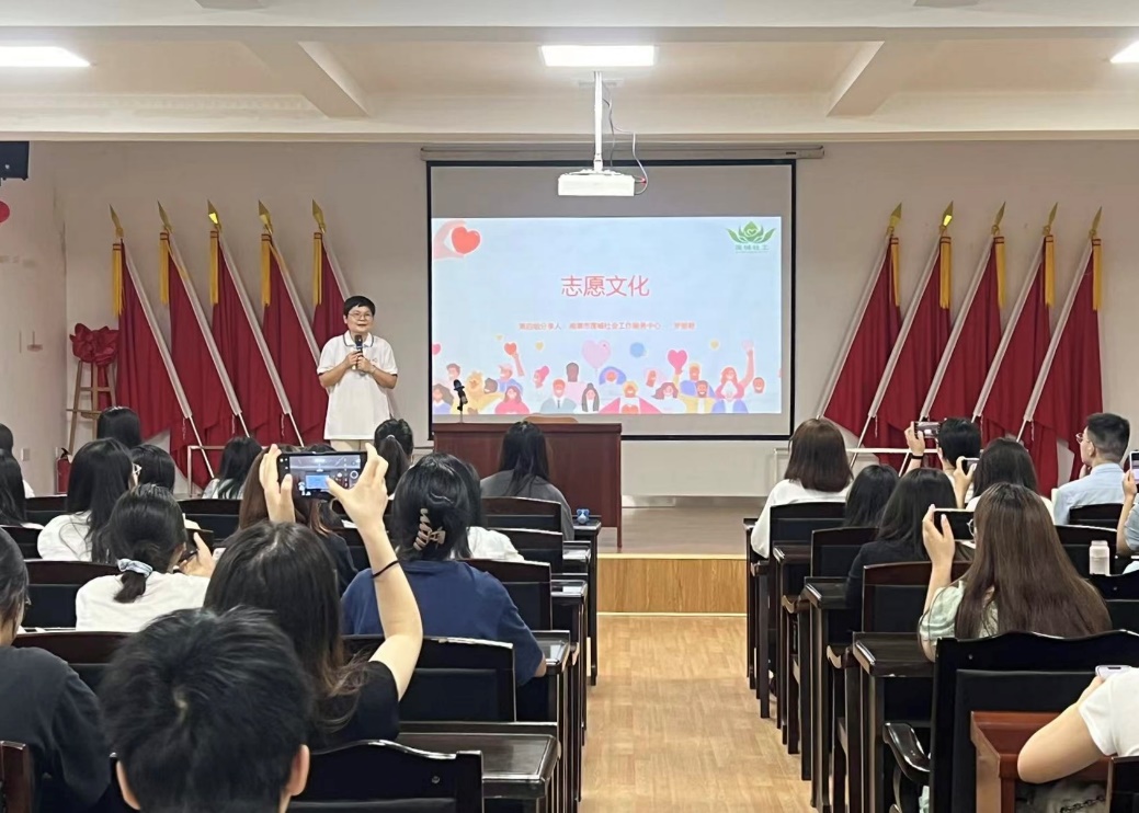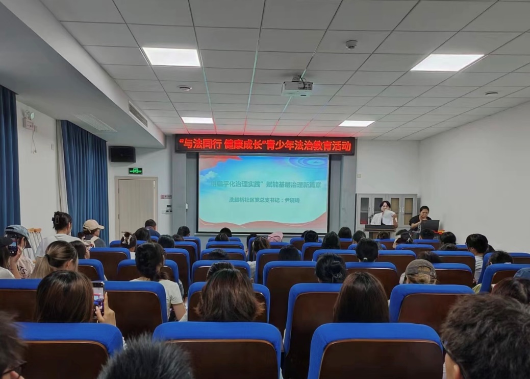 6月18日上午,师生一行又来到岳塘区霞光社区。在相关负责人的带领下,师生一行沿路参观霞光社区,并对社区排水系统的管理、零工驿站、老年人再就业等相关问题进行深入了解。随后,师生一行参观了侨胞之家,了解到霞光社区工作人员本着“以侨为本,为侨服务”的理念,开展了一系列有关侨胞安置工作和活动。之后,师生一行在会议室认真听取了社区副书记刘诗琴有关社区管理实践的经验介绍,其中重点介绍了社区通过聘请专业律师宣讲、发放漫画宣传册、与腾讯公益等专业机构合作等方式开展普法工作的情况。最后,湘潭市莲城社会工作服务中心负责人罗丽君就社区志愿服务工作中如爱心时间银行、青年公益领袖营等创新项目的开展情况进行了介绍,让同学们既了解了社区志愿活动的组织开展情况,也深深认识到社工群体是回应人民期待、满足社会所需的重要力量。