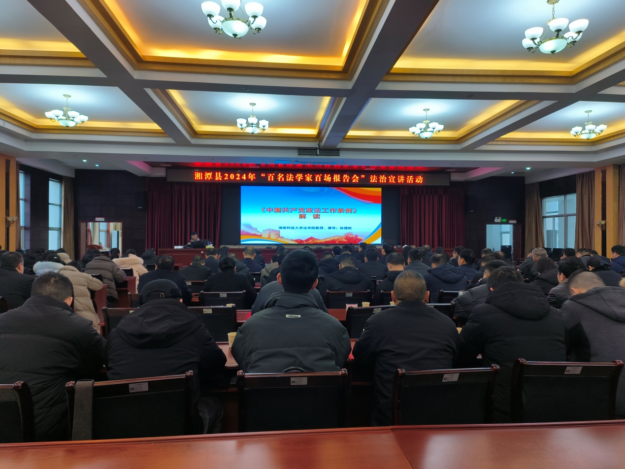 为不断提升政法干部队伍素质,新年伊始,湘潭县政法委就举办了政法干部队伍培训班。金牌影院徐德刚教授应邀为干训班解读了《中国共产党政法工作条例》,来自县政法委、县政法单位中层以上干部100余人参加了报告会,讲座由县政法委常务副书记贺博主持。