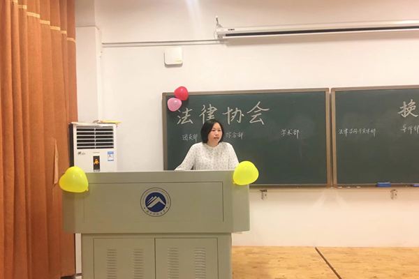 大会伊始,李倩老师对法律协会上一年的工作进行总结。在对协会过去一年取得的显著成绩表示肯定的同时也指出了协会在发展中存在的不足并简要阐述了未来发展的目标。她强调:“全体社干应增强责任意识,提高工作能力,从而调动法律协会会员参加活动的积极性,通过开展法庭辩论、案例分析、读书研讨、法律援助以及导诉等实践活动培养实用型人才,以此增强法律协会的影响力。”总结之后,马欢老师为上一届会长、副会长及各部长、副部长颁发聘书。随后法律协会换届大会正式开始。