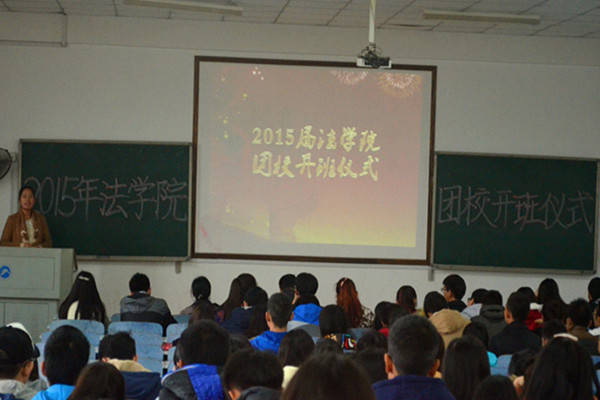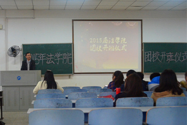 | 11月17日下午两点,金牌影院在八教4—3教室举行2015年团校开班仪式。出席嘉宾有金牌影院党委副书记叶军、院分团委书记朱荣,第十三届团委学生会各部门成员、三大社团代表及各班班团参加仪式。 仪式上,团委第一副书记张航侨和学生会主席姚牧雨分别介绍了各自的任职经历、分管部门和工作感悟,希望大家以“自我管理、自我教育、自我服务”的要求对待工作。各个部门则通过宣扬特色口号,表达出他们的投身学生工作的斗志与决心。“宣法院之妙闻,传法院之精神。我是新闻人,我为宣传部代言”斗志昂扬,展示出宣传部的责任与自豪;“建一院学风,守一方明月。法院学习部,有你hold住”趣味而不失端庄,彰显了学习部不懈的服务精神。最后,叶书记现身说法,列举了往届学生干部中切实处理好工作与学习两方面的优秀代表,并结合身边的案例提出全面发展的大学生才能适应社会就业需求这一严峻事实。他要求同学们一方面专注学习,惜时如金,另一方面积极培养团队意识,提升工作能力,实现学习与工作的双赢。 在大家热烈的掌声中,本届法金牌影院