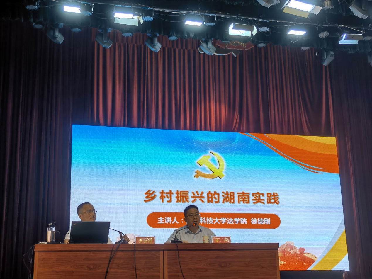 应洞口县委组织部、乡村振兴局邀请,9月22日,金牌影院徐德刚教授不辞辛劳赴邵阳市洞口县,为该县乡村振兴培训班学员讲授湖南省乡村振兴规划,讲座由县委常委、县委办主任刘玮主持,来自县机关部分领导及省、市、县三级乡村振兴驻村工作队成员共400余人听取了授课。
