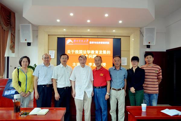 ——记湖湘法治论坛十七讲   9月20日下午4时30分,法学教育家、武汉大学资深教授、博士生导师李龙应邀来金牌影院指导,并于文科楼A425会议室开展以“关于我国法学教育发展的几个问题”为主题的讲座。院长徐德刚担任主持,党委书记黄伟、副院长胡正昌、副书记叶军、专业老师李云霖、夏飞明、胡之芳、李倩和15级法学专业学生到场学习。 “法学最早研究的是人的行为规则,‘法典是人民自由的圣经’,我们研习法律,一方面希望确认和保障公民自由权利,另一方面也是确保公民正确行使自由权利。”李龙教授详细为大家讲述了法学教育的发展历程,从春秋子产造刑书到中国历史上第一部较完整的封建社会法典《法经》的制定, 从三国魏明帝时设律博士职专门传授法学到晚清法学家沈家本仿照西方模式修订法律。 “曾经的法学本科教育是有专业区分的。上世纪90年代末,国内法学本科教育改革呼之欲出。我当时曾指出,中国法学教育改革的关键在于更新法学教育观念,即摒弃从苏联沿袭过来的‘对口教育’理念,转而探求法学素质教育,着重培养学生的能力,并提出将过去分散的几个法学专业合并成一个法学本科专业。”李龙教授由此告诫大家在法学发展的新阶段要抓住机遇,并以新姿态、新思想去研究新问题。 结合当代法学教育问题的现状,徐德刚院长虚心请教:“老师应如何加强对本科生的培养以及法科生的未来趋势会是怎样的?”李龙教授答道:“我常常对我的学生提出‘三要求’,倡导‘三精神’。 ‘三要求’即要博览群书,要勤于思考,要笔耕不辍;‘三精神’即夯实基础理论的勤奋精神、联系现实问题的批判精神以及开拓理论前沿的探索精神。同时我们要看到法学的前途,积极奋斗,永不服输。”至此,讲座圆满结束。 (责任编辑:admin) |
