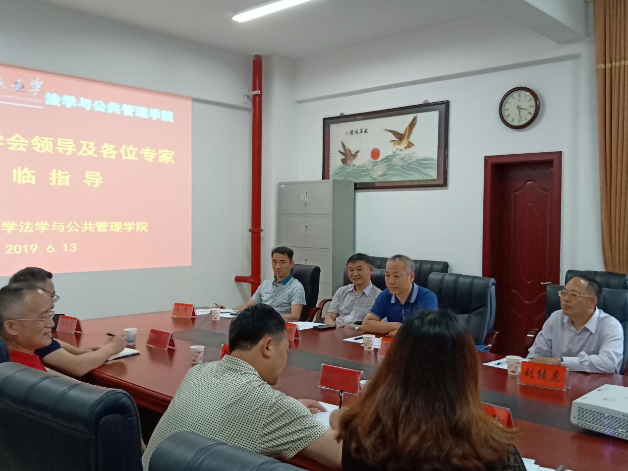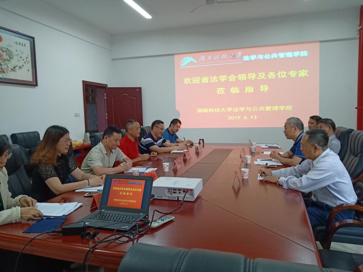 为推动法学研究工作有效开展,多出高质量的研究成果,更好地服务于党和政府中心工作和政法工作,2019年6月13日,湖南省法学会副秘书长罗良方,省财税法学会会长刘继虎教授、省社会法学会会长余卫明教授,省法学会办公室主任王靖、湘潭市法学会秘书长谢世鸿一行来金牌影院开展了课题的中期检查工作。我校社科处处长吴建军教授、金牌影院院长徐德刚教授、副院长李云霖教授、副院长邱帅萍博士参加了此次活动。会上,徐院长介绍了金牌影院办学规模、师生情况和学科特色。项目主持人宋智敏博士和张美玲博士则如实反映了各自课题开展情况、阶段性成果、存在的困难和问题等。与会领导和专家充分肯定了项目主持人在前期研究中所取得的成绩,并希望今后强化问题意识,立足湖南,为省委、省政府的相关决策提供“金策”。