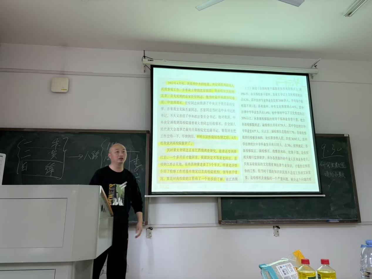 开展法学前沿讲座。本次讲座由刘鄂老师主讲,以共和国最高检检察长、最高法院长历任履职历程为核心,系统梳理我国法检机关发展脉络,带领同学们探寻法治建设的时代轨迹与前沿方向。