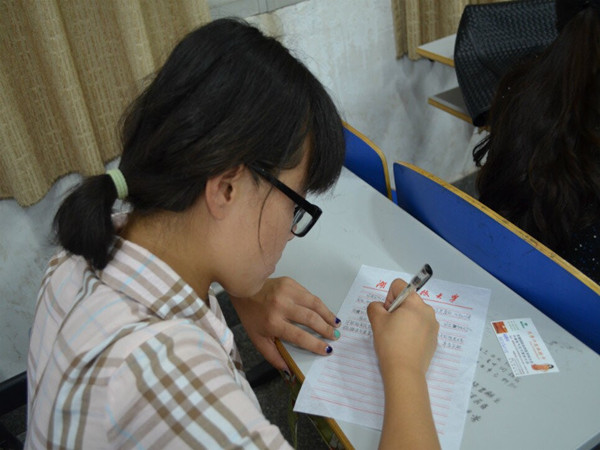 宣传部部长王亚兵等嘉宾到场进行指导。 晚上7点整,比赛在震撼的开场视频中拉开序幕。首先进行的是短作文写作比赛。一段视频引出了本次短文写作的主题,小小参赛者们开始提笔思索,顿时浓郁的写作气氛充斥着整个赛场...... 紧接着,由主持人向大家展示了本次长作文写作的备选题目。《给五年前的我》、《盲》、以“秋天责备”和“诗·史”为主题作文。这些作文题目看似新颖,其实是想让参赛者能够取材于生活,用慧眼来发现平凡中的美,引导大家捕捉生活中的精彩。“我们从来无法预知未来,也无力改变历史,如今的欢笑苦痛都是既定的,若知今日,还愿意好好地对曾经的自己说些什么。提起笔,轻叙慢述,给自己一个完美的交代.......”正如《给五年前的我》这一作文题所要求的这样,能够在文字中去认清现在的自我,或许在未来的航路里,我们才不会迷失方向。 时间在沙沙的写字声中悄悄流逝,赛场上法院骄子、物电精英肆意挥洒,激扬文字,任墨香飘散于教室之中。他们时而托腮凝思,时而奋笔疾书,用生花妙笔尽情书写人生,来抒发自己的真情实感. 数风流人物,还看今朝。写作小能手即将在他们中间诞生。2014级法金牌影院