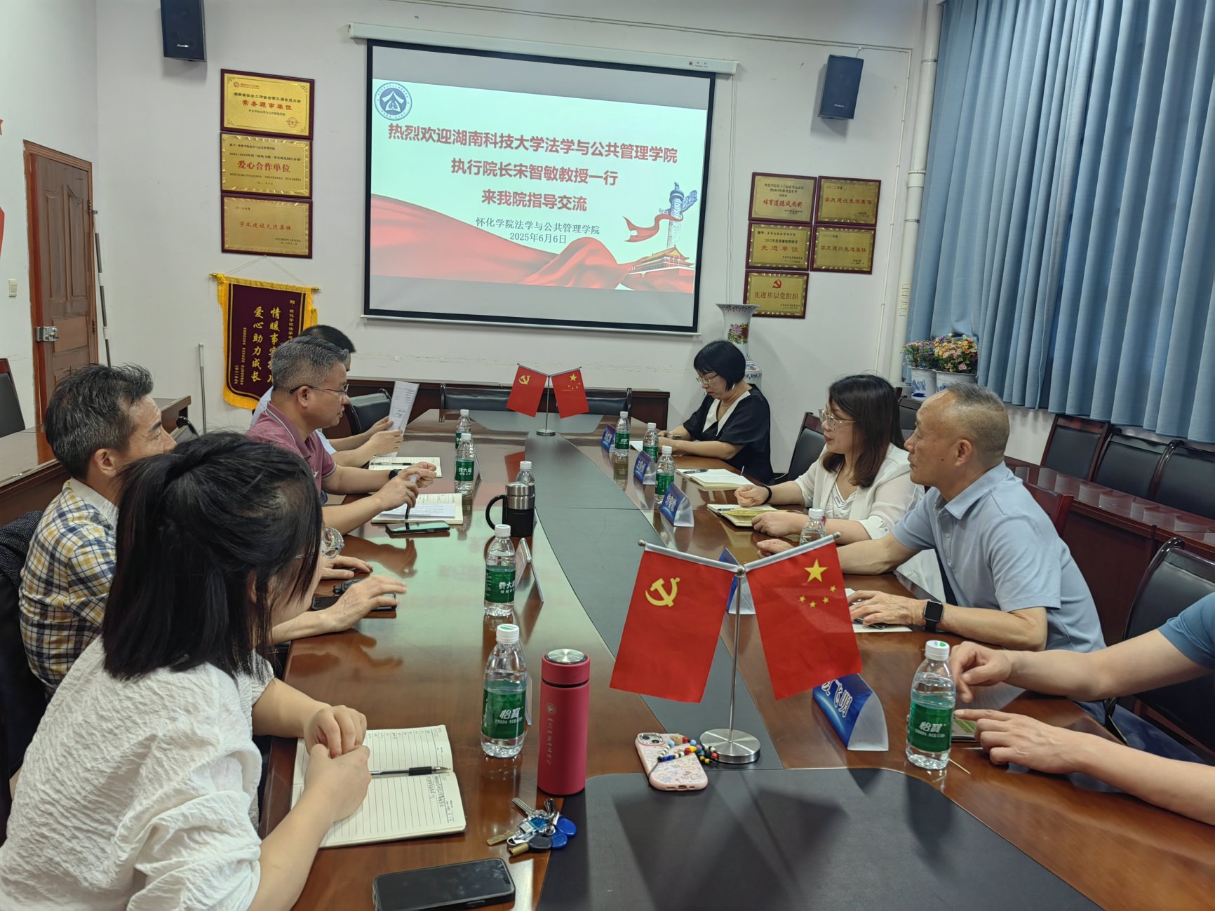 基本情况、专业学生分布、实习实践教学、实验实训资源、法考通过率、毕业班研究生报考等相关工作作了深入交流。宋智敏副院长对于湖南人文科技金牌影院